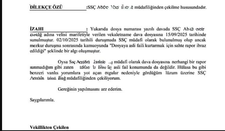 Duruşma sırasında tepkilere maruz kalan ve sanık A.Ö.’nün avukatı ise davadan çekildi.Avukat çekilme dilekçesinde, "yanlış yorumlara yol açan olgular nedeniyle gördüğüm lüzum üzerine müdafiliğinden çekiliyorum" ifadelerini kullandı.