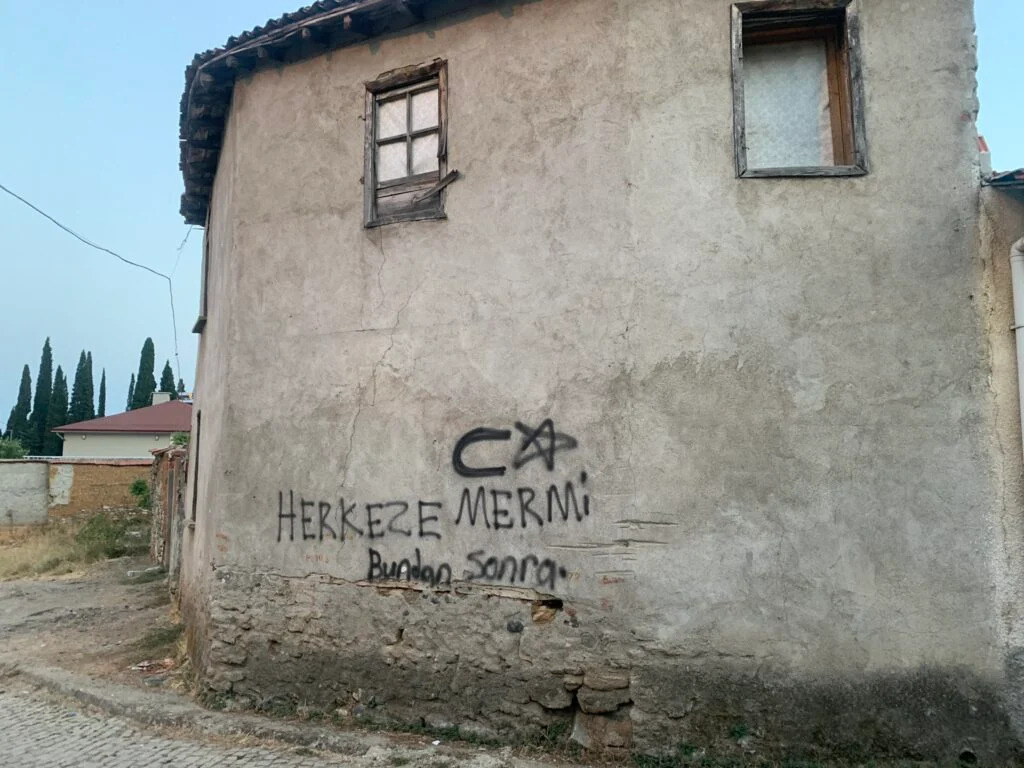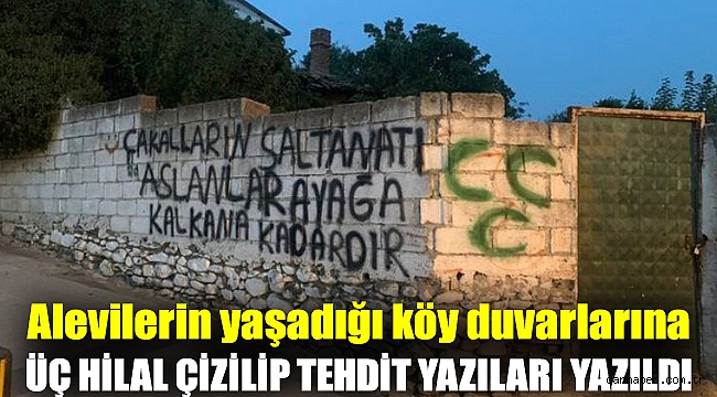 Balıkesir’in Edremit ilçesine bağlı Alevi yurttaşların yaşadığı Güre Köyü’nde üç hilal çizilip tehdit yazıları yazıldı.Alevi yurttaşlara yönelik tehdit mesajlarını sosyal medya hesabından duyuran Gazeteci Canan Çoşkun, yazıların jandarmaya bildirildiğini söyledi. Coşkun, ihbar sonucu köye gelen jandarma komutanının ‘araştırıp kulak çekeriz, ama yapanı söylemezler’ dediğini aktardı.