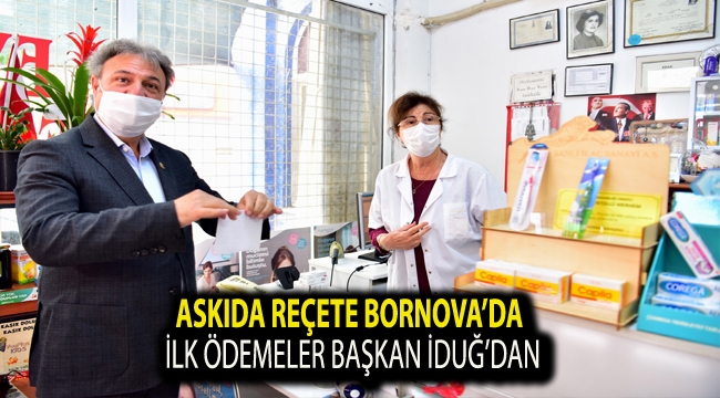 Başkan Mustafa İduğ, koronavirüs salgını sürecinde yaşanan sıkıntılar nedeniyle ilaç alamayan ya da aldığı ilacın parasını ödeyemeyen vatandaşlara destek olmak amacıyla başlattıkları "Askıda Reçete" kampanyasında Yeşilova ve Çamdibi’ndeki iki eczaneye ödeme yaptı. Bornova Belediyesi Meclis Başkan Vekili Hüseyin Ünal ve Başkan Yardımcısı Ercan Kahya ile birlikte veresiye defterlerini inceleyen İduğ, ilgili belgeleri de alarak kayıtlı bir şekilde ödemesini yaptığı vatandaşların borç listesindeki isimlerini kendi eliyle sildi, kapattığı veresiye defterini yırtıp, attı.