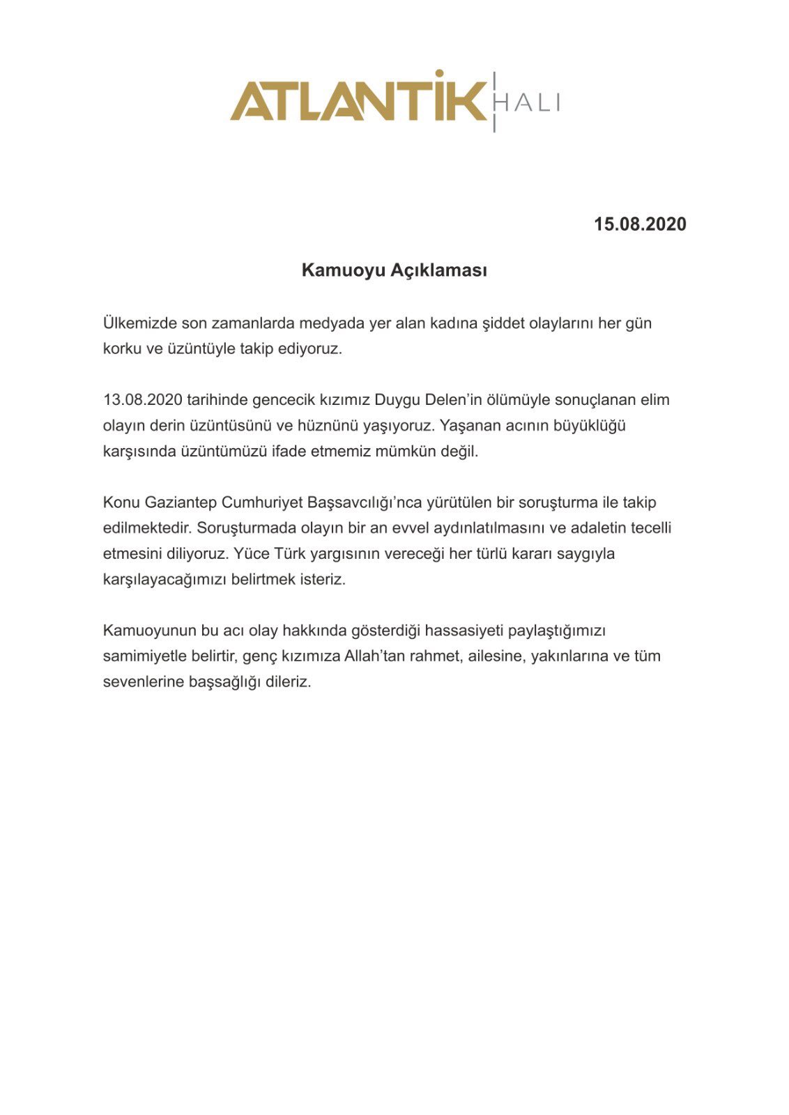 ATLANTİK HALI AÇIKLAMA YAPTI