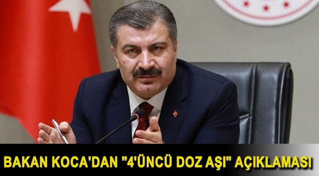 Sağlık Bakanı Fahrettin Koca, Twitter hesabından "4'üncü doz aşı" üzerine açıklamalarda bulundu."Özel seyahat için talep edilmesi dışında ek bir aşı gerekliliği yoktur." diyen Koca, Sağlık Bakanlığı'nın koronavirüs aşılaması ile ilgili yaptığı güncellemeye açıklık getirdi.Koca, "Bugün itibariyle 2 doz mRNA aşısı ya da 3 doz inaktif aşı olmuş kimsenin ek bir doz aşı olmasını gerektiren bir durum söz konusu değildir. Böyle bir tıbbi gereklilik de kesinlikle yoktur." ifadelerini kullandı.Koca'nın açıklaması şöyle: