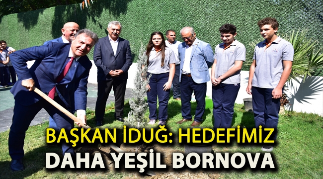 Yeniden Yeşil Bornova’yı oluşturmak için yola çıktıklarını hatırlatan Bornova Belediye Başkanı Dr. Mustafa İduğ, “Bornova, en çok göç alan ilçelerden biri olarak zaman içinde kaçak yapılaşma ve hatalı kentleşme uygulamalarıyla yeşil olma özelliğini yitirmeye başladı. Bunu yeniden temin etmek amacıyla ilçemiz genelinde 5 bin ağaç dikiyoruz. Ayrıca tüm mahallelerimizi tarıyor, uygun alanlara mümkün olduğunca park, yeşil alan ve spor tesisi yapmaya gayret ediyoruz. Projelerini hazırladığımız dört yeni parkımızı en kısa sürede yaparak vatandaşlarımızın kullanımına açacağız” diye konuştu.