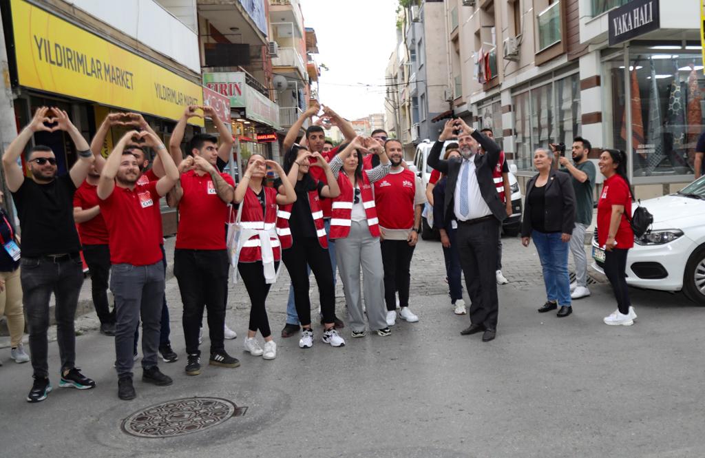 BİRLİKTE BAŞARACAĞIZBayraklı Belediye Başkanı Serdar Sandal’ın mahalle turlarına CHP Bayraklı İlçe Başkanı Didem Gültekin, meclis üyeleri CHP Bayraklı kadın ve gençlik kolları üyeleri de katıldı. İlçenin her mahallesini karış karış gezerek esnaf ve vatandaşın sorunlarını, taleplerini dinleyen Başkan Sandal, genel seçimlerde değişim mesajı verdi. Gençlere seslenen Başkan Sandal “Birlikte başaracağız” dedi.