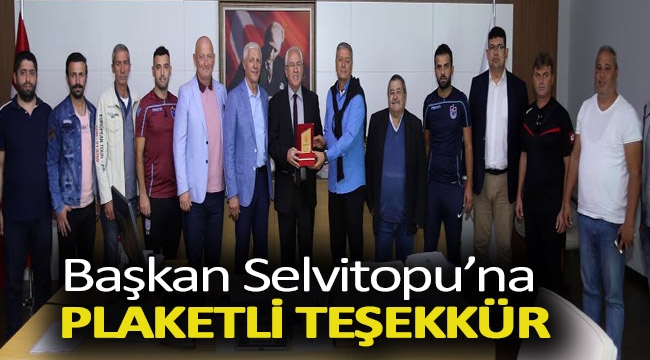 Dernek Başkanı Dilaver Mutlu ve ilçedeki amatör futbol kulüplerinin yöneticileri, Başkan Selvitopu’nu makamında ziyaret etti. Dernek yöneticileri, geçen ay ilçedeki 26 amatör futbol kulübüne 10’ar bin lira maddi katkı sağlayan Başkan Selvitopu’na teşekkür ederek plaket verdi.