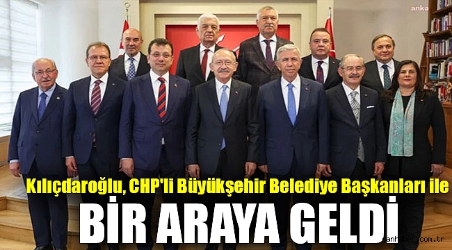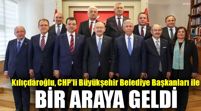 Cumhuriyet Halk Partisi (CHP) Genel Başkanı Kemal Kılıçdaroğlu, CHP'li büyükşehir belediye başkanlarını bugün Genel Merkez'deki makamında kabul etti. Görüşmeye İstanbul Büyükşehir Belediye Başkanı Ekrem İmamoğlu, Ankara Büyükşehir Belediye Başkanı Mansur Yavaş, İzmir Büyükşehir Belediye Başkanı Tunç Soyer, Adana Büyükşehir Belediye Başkanı Zeydan Karalar, Mersin Büyükşehir Belediye Başkanı Vahap Seçer, Tekirdağ Büyükşehir Belediye Başkanı Kadir Albayrak, Eskişehir Büyükşehir Belediye Başkanı Yılmaz Büyükerşen, Antalya Büyükşehir Belediye Başkanı Muhittin Böcek, Muğla Büyükşehir Belediye Başkanı Osman Gürün, Aydın Büyükşehir Belediye Başkanı Özlem Çerçioğlu katıldı.Hatay Büyükşehir Belediye Başkanı Lütfü Savaş ise bölgede deprem sonrası yürütülen çalışmalar nedeniyle toplantıya katılmadı.Kılıçdaroğlu'na görüşmede CHP Yerel Yönetimlerden Sorumlu Genel Başkan Yardımcısı ve Ordu Milletvekili Seyit Torun eşlik etti.