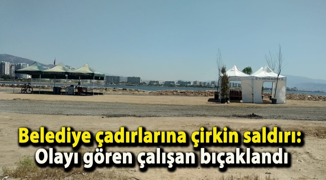 Olayı gören ve müdahale etmesi sonrasında bıçaklanan belediye personeli Recep Ali Peker, "İki kişiydiler ve çadırlara zarar vermeye çalışıyorlardı. 'Ne yapıyorsunuz' diye sorduğumda belediyemize küfrederek ve "Bu çadırları buradan kaldıracaksınız" diyerek üzerime saldırdılar. Boğuşma sırasında beni bacağımdan bıçakla yaralayıp kaçtılar. Yüzlerinde siyah maske vardı" diye konuştu. Telefonla arayıp yardım istediği arkadaşları tarafından hastaneye kaldırılan Peker'in bacağına 18 dikiş atıldığı ve sağlık durumunun iyi olduğu belirtildi. Öte yandan Başkan Tugay, Peker'i evinde ziyaret ederek geçmiş olsun dileklerini iletti ve olayla ilgili bilgi aldı.