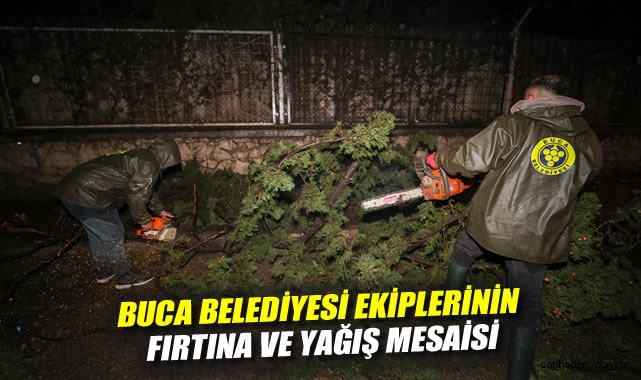 Buca Belediyesi Park Bahçeler ve Fen İşleri Müdürlüğü’nün ortak çalışmaları ile ilçe genelinde yaşanan ağaç devrilmesi vakalarına hızla müdahale edildi. Devrilen tüm ağaçlar motorlu testerelerle kontrollü bir biçimde küçük parçalara ayrıldı. İş makineleri ve kamyonlar yardımı ile toplanan ağaç dalları yollardan temizlenerek bölgeden uzaklaştırıldı. Ekipler gece boyunca Onat Caddesi, Fırat Mahallesi 289/65 Sokak, Uçan Yol Homeros Bulvarı’nda yaşanan ağaç devrilmelerine müdahale etti. Yeşilbağlar Mahallesi 637/4 Sokak’ta ise ağacın bir apartmanın çatısına devrilmesi sonucu evin çatısı hasar aldı. Ekipler buraya da çok kısa bir sürede müdahale ederek daha olumsuz bir durumun yaşanmasına müsaade etmediler.