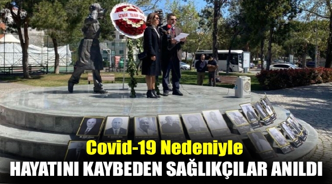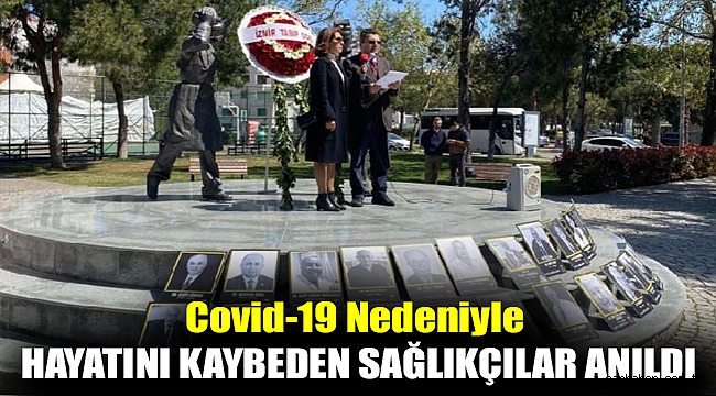 1 Nisan Covid-19 Nedeniyle Kaybettiğimiz Sağlık Çalışanlarını Anma Günü kapsamında Bostanlı’da ‘Sağlık Çalışanları Saygı Anıtı’nda toplanan sağlık çalışanları Covid-19 nedeniyle hayatını kaybeden hekimler ve sağlık çalışanlarını andı. Hayatını kaybeden sağlık çalışanlarının fotoğrafları olduğu anıtta çelenk sunumu ve saygı duruşu gerçekleştiren sağlıkçılar adına basın bültenini İzmir Tabip Odası Başkanı Prof. Dr. Süleyman Kaynak okudu.