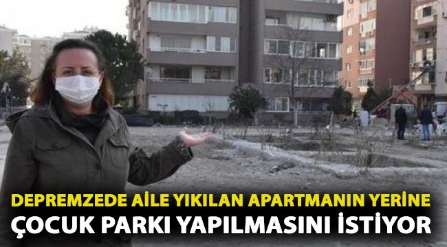 Depremzede aile yıkılan apartmanın yerine çocuk parkı yapılmasını istiyor