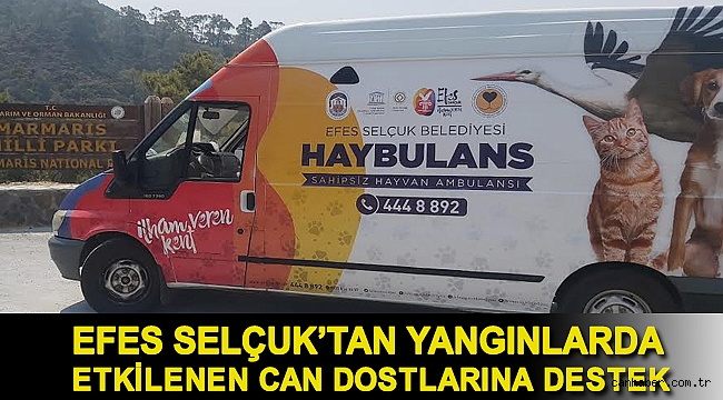 Efes Selçuk Belediyesi, orman yangınından etkilenen Marmaris Armutalan Mevkii’ne Haybulans gönderdi. Haybulans ve veteriner hekim yangından etkilenen can dostlarının tedavisine destek oluyor.