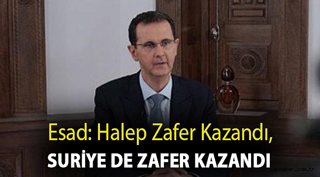 Suriye Devlet Başkanı Esad, "Halep zafer kazandı. Suriye de zafer kazandı. Hepimiz zihnimize aşılamaya çalıştıkları evhamları yendik. Bölünmeyi yendik, Kini, ihaneti ve bütün bu sıfatları temsil eden, taşıyan ve uygulayanları yendik" dedi.