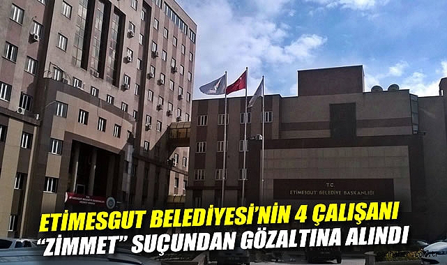 Ankara Etimesgut Belediyesi'ne, belediyenin şikayeti üzerine başlatılan zimmet" soruşturması kapsamında 4 kişi gözaltına alındı.Etimesgut Belediye Başkanlığına ait iştirak şirketi Etimkent A.Ş. Genel Müdürü M.Ç, Etimesgut Belediyesi Sosyal Yardım İşleri Müdürü A.C, Etimesgut Belediyesi Sosyal Yardım İşleri Müdürlüğü Mutemeti S.K. ve Etimkent A.Ş kasa sorumlu personeli H.B. hakkında gözaltı kararı verildi.Sabah saatlerinde yapılan operasyonda gözaltına alınan 4 kişinin evlerinde ve işyerlerinde arama yapıldı. Ankara Batı Cumhuriyet Başsavcılığı'nca yürütülen soruştumaya ilişkin yapılan açıklamada şunlar kaydedildi:
