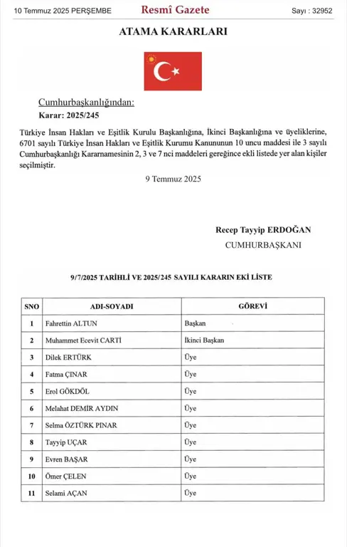 Cumhurbaşkanı kararıyla Cumhurbaşkanlığı İletişim Başkanı Fahrettin Altun, görevden alındı.Altun'un yeni görevi de belli oldu.Resmi Gazete'de yayımlanan Cumhurbaşkanı Kararı'na göre Altun, Türkiye İnsan Hakları Eşitlik Kurumu Başkanlığına atandı.