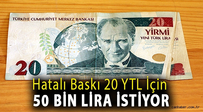 Hatalı baskı 20 YTL için 50 bin lira istiyor