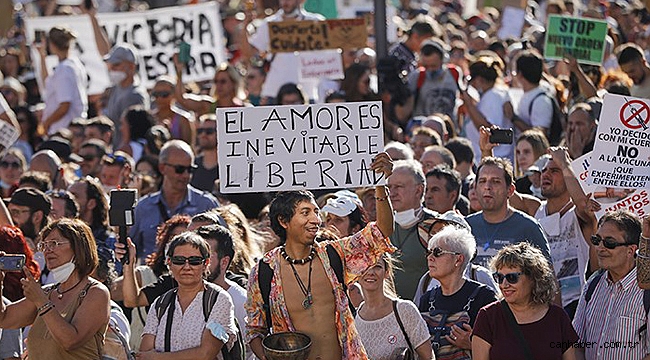 İspanya'da yüzlerce kişi koronavirüs önlemlerine karşı maskesiz yürüdü
