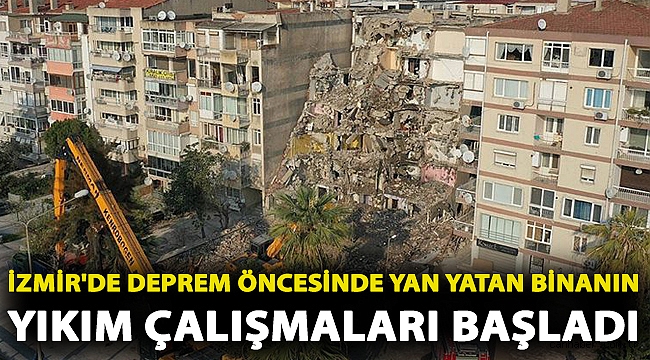 İzmir'de deprem öncesinde yan yatan binanın yıkım çalışmaları başladı