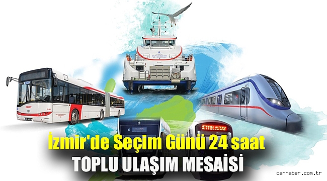 İzmir'de tüm toplu ulaşım araçları, 28 Mayıs Pazar günü yapılacak cumhurbaşkanlığı seçimi nedeniyle 24 saat kesintisiz hizmet verecek. ESHOT, İZULAŞ, İZTAŞIT, metro, tramvay ve İZDENİZ ile İZBAN seferleri, 27 Mayıs Cumartesi'yi Pazar'a bağlayan gece 03.30'dan itibaren başlayacak.