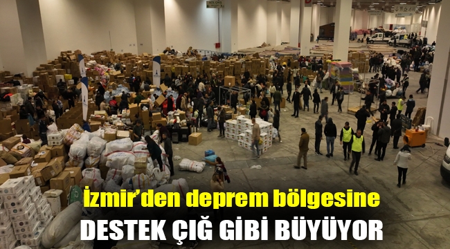 İzmir Büyükşehir Belediyesi’nin afet bölgesine başlattığı destek çalışmaları artarak büyüyor. 11 tır, iki uçak, bir gemi insani yardım malzemesi Adana, Diyarbakır ve Kahramanmaraş’a sevk edildi. 100 bin öğünlük sıcak yemek üretecek mobil mutfak bugün bölgede üretime başlıyor. Büyükşehir ekiplerinin arama kurtarma ekipleri, bölgede arama kurtarma çalışmalarını sürdürüyor. İzmir Büyükşehir Belediye Başkanı Tunç Soyer, “İzmir'den deprem bölgesine yardım aktarmaya devam ediyoruz. Mobil ameliyathanemiz de faaliyete geçiyor” dedi.