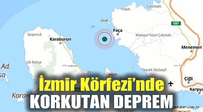 İzmir depremle sallandı. AFAD’ın verilerine göre, İzmir Körfezi’nde Foça 4.8 km açıklarında 4.1 büyüklüğünde deprem meydana geldi.Saat 21.22’de olan deprem yerin 14.5 kilometre derinliğinde gerçekleşti.İlk belirlemelere göre herhangi bir olumsuzluk yaşanmadı.Öte yandan Kandilli Rasathanesi ise depremin büyüklüğünün 4.2 olduğunu ve yerin 6.9 kilometre derinliğinde meydana geldiğini bildirdi.