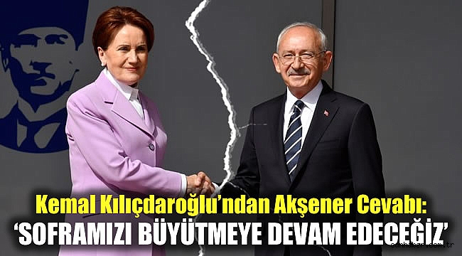 Cumhuriyet Halk Partisi (CHP) Genel Başkanı Kemal Kılıçdaroğlu, İYİ Parti lideri Meral Akşener'in; belediye başkanları Mansur Yavaş ve Ekrem İmamoğlu'na çağrı yaparak, "Millet sizi göreve çağırıyor" çıkışının ardından Twitter hesabından yeni bir video paylaştı.CHP lideri, söz konusu videoyu "Soframızı büyütmeye devam edeceğiz. Sabırla…" başlığıyla yayımladı.Millet İttifakı'nı bir sofraya benzeten CHP lideri şöyle konuştu: