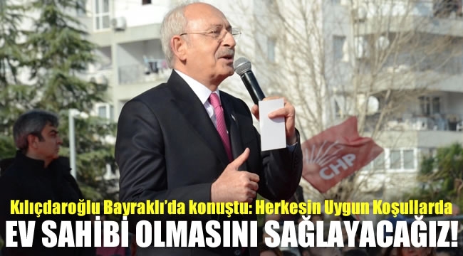 Törene katılan Kılıçdaroğlu, kooperatifleşme mantığıyla depremzedelere en uygun koşullarda ev sahibi olma imkanı sağlandığını belirterek, daha önce İzmirli depremzedelerin kat artış talebini karşıladıklarını, konutlar için ucuz kredi bulunduğunu kaydetti.Halk Konut Projesi'ni bütün illerde uygulayacaklarını ifade eden Kılıçdaroğlu, "Türkiye'nin bütün illerinde evleri hasar gören herkesin uygun koşullarda ev sahibi olmasını sağlayacağız. Vatandaşla kamunun beraber olması lazım. Birlikte, el ele olması lazım. Beraber kazanmamız lazım. O kazanımların getirdiği artıları hayata geçirmemiz lazım. İzmir bu konuda öncülük yaptı." diye konuştu.Kılıçdaroğlu, Türkiye'nin bir deprem bölgesi olduğunu, önlem almanın siyasal iktidarların temel görevleri arasında yer aldığını kaydederek, şöyle devam etti:"Japonya da deprem bölgesi ama Japonya'da daha şiddetli depremler olmasına karşın kimsenin burnu kanamaz. Ama bizde daha düşük tonda bir depremde çok sayıda insan hayatını kaybediyor. Akılla, mantıkla, bilgiyle, bilişimle, dayanışmayla bu sorunu aşabiliriz. Ve bu sorunu aşmakta kararlıyız. Bu sorunu aşmanın temel yolu bilgiyi egemen kılmak. Bilgiye dayalı inşaatlar yapmak ve insanların da o konutlarda güven içinde oturmalarını sağlamak. Deprem vergileri bunun için çıktı. Deprem vergilerinin halktan toplanmasının temel mantığı da buydu. Güzel, depreme dayanıklı konutlar yapılacaktı. Ve insanlarımız o konutlarda huzur içinde oturacaktı. Ama nereye gittiğini bir türlü öğrenemedik. Ve bunun hesabı da yeteri kadar verilmedi. Ama hiçbir yurttaşımız endişe etmesin, o deprem vergilerinin nereye harcandığını bulacağız. Nerelere savrulduğunu bulacağız. Türkiye'nin bütün kentlerini depreme dayanıklı kentler haline dönüştüreceğiz. Akılla, mantıkla, bilgiyle, birikimle ve şeffaf bir yönetimle ve demokrasiyle bunların tamamını yapacağız."