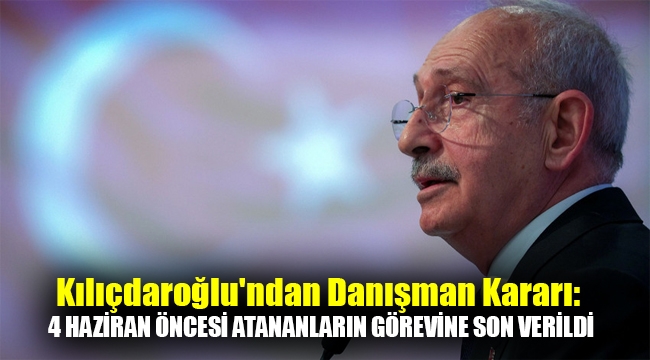CHP Genel Başkanı Kemal Kılıçdaroğlu, 4 Haziran'dan önce atanan danışman ve başdanışmanlarının görevlerine son verdi. CHP'den yapılan açıklamada "Cumhuriyet Halk Partisi Genel Başkanı Kemal Kılıçdaroğlu tarafından, 4 Haziran 2023 tarihi öncesi danışman ve başdanışman olarak atanan tüm kişilerin, görevleri 14 Haziran 2023 tarihi itibari ile sonlandırılmıştır. Cumhuriyet Halk Partisi adına yaptıkları çalışmalar için her birine ayrı ayrı teşekkür ederiz. Kamuoyuna saygıyla duyurulur" ifadeleri yer aldı.