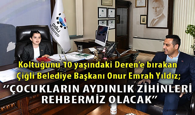 Çiğli Belediye Başkanı Onur Emrah Yıldız, Türkiye Büyük Millet Meclisi’nin kuruluşunun 104. yılı ve 23 Nisan Ulusal Egemenlik ve Çocuk Bayramı dolayısıyla başkanlık koltuğunu çocuk Başkan Deren Kırkmalı’na emanet etti. 10 yaşındaki küçük Başkan Deren Kırkmalı, İnsan Kaynakları ve Eğitim Müdürü Engin Taş’a kadın çalışanların sayısının artırılması, kadın çalışanlara pozitif ayrımcılık yapılması ve belediyedeki atamalarda da kadınlara öncelik verilmesi talimatında bulunurken, Başkan Onur Emrah Yıldız’dan; “Biz de bu yönde çalışmalarımızı sürdürüyoruz. Belediye Meclisi’mizde olduğu gibi kurumsal yapımızda da kadınlar öne çıkacak” yanıtı geldi.