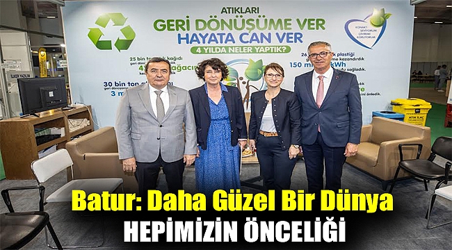 Çevre ve Geri Dönüşüm Teknolojileri (We-Cycle ) Fuarı’nda yerini alan Konak Belediyesi, kurduğu stantta yaptığı çalışmaları aktarırken, Konak Belediye Başkanı Abdül Batur doğanın korunmasında yerel yönetimlere büyük görevler düştüğüne dikkat çekerek, “Bu fuarda özellikle yer almak istedik; çünkü çevre ve geri dönüşüm çalışmalarına büyük önem veriyoruz. Bugün çocuklarımıza daha güzel bir dünya bırakmak hepimizin öncelikli görevi olmalı” diye konuştu.