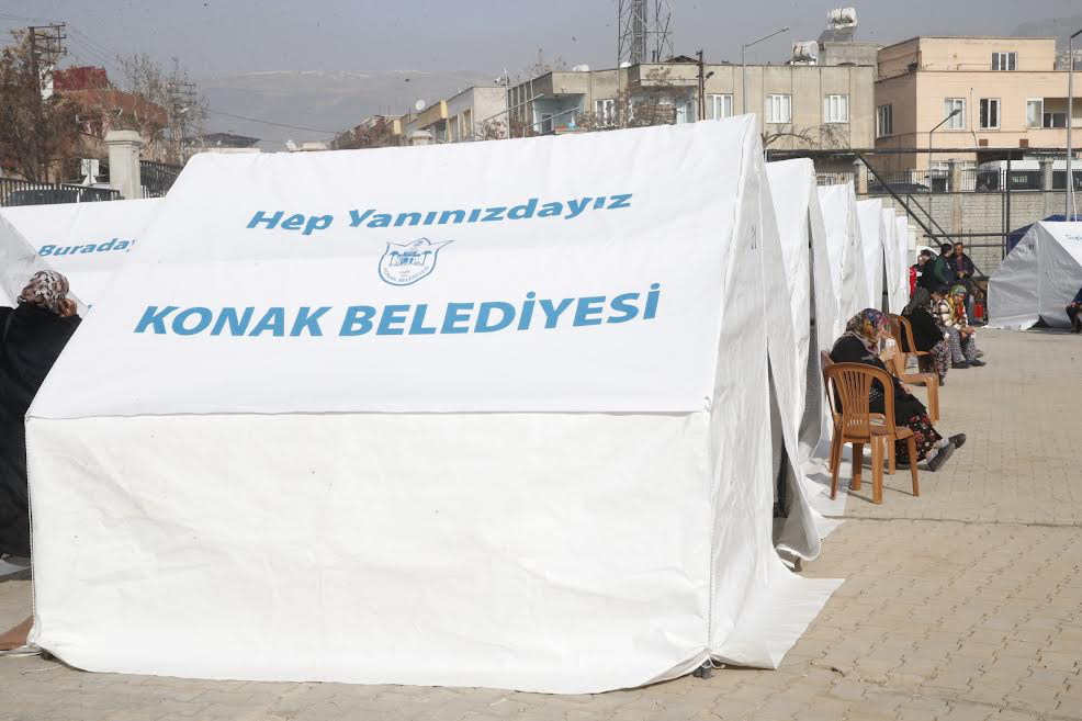 “Yaşam alanı kurduk”Konak Belediyesi ekiplerinin depremin ilk gününden bugüne bölgede olduğunu söyleyen Konak Belediye Başkanı Abdül Batur, çadır sayısını hızla artırmaya gayret ettiklerini söyledi. Batur, “İlk etapta yüz çadırlık bir yaşam alanı kurduk. Talep olan, ihtiyaç duyulan yerlerde çadır kentlerimizi kurmaya devam edeceğiz. Sadece çadır değil, vatandaşlarımızın tüm ihtiyaçlarının karşılandığı, onlara psikolojik destek sunduğumuz, çocuklarımızın eğitici aktivitelere katıldığı yaşam alanları oluşturuyoruz. Öğünlerin düzenli sunulduğu, bakımı, temizliği yapılan yerler bu alanlar. Çok büyük acılar, kayıplar yaşayan vatandaşlarımızın bir nebze de olsa rahat yaşamalarını sağlayabiliyorsak ne mutlu bizlere. Elimizden geleni yaptık. Hatay’da hizmet sunmuştuk. Şimdi Kahramanmaraş’tayız. Kahramanmaraş’ta Genel Başkanımız Sayın Kemal Kılıçdaroğlu’nun görevlendirmesi ve Ankara Büyükşehir Belediye Başkanımız Mansur Yavaş’ın organizasyonuyla çalışmalarımızı sürdürüyoruz. Bundan sonra da elimizden ne geliyorsa yapmaya devam edeceğiz” diye konuştu.Öztunç’tan Batur’a teşekkürCHP Genel Başkan Yardımcısı ve Kahramanmaraş Milletvekili Ali Öztunç da Konak Belediyesi’nin çadır kentini ziyaret ederek incelemelerde bulundu. Twitter hesabından Konak Belediye Başkanı Abdül Batur’un hesabını ekleyerek, fotoğraflarla ziyaret anlarını paylaşan Öztunç, Konak Belediyesi’nin Kahramanmaraş merkeze yemekhanesi, çocuklar için özel alanı olan 100 çadırlık bir çadır kent kurduğuna dikkat çekti. Öztunç, paylaşımında Başkan Batur’a şahsı ve hemşehrileri adına teşekkür etti.