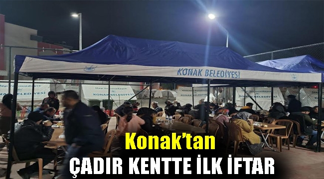 Konak Belediyesi ramazan ayının ilk sahur ve iftar sofrasında, Kahramanmaraş'ın Dulkadiroğlu ilçesinde yaşam alanı haline getirdiği çadır kentte kalan depremzede vatandaşları ağırladı. Çadır kentte kalan yaklaşık 500 depremzede vatandaş, sahurun ardından ramazanın ilk iftar sofrasında orucunu açtı. konak Belediyesi’nin ramazan ayı boyunca tüm sahur ve iftar sofralarını deprem bölgesinde kuracağını söyleyen Konak Belediye Başkanı Abdül Batur, “6 Şubat’ta ardı ardına meydana gelen depremlerde nice vatandaşımızı kaybettik. Kayıplarımız da acılarımız da çok büyük. O günden beri deprem bölgelerindeki hemşehrilerimiz için elimizden ne geliyorsa yapmaya çalışıyoruz. Ramazan ayı da bize en çok kardeşliği, dayanışmayı, paylaşmayı hatırlatıyor. Bu çok özel günlerde de depremzede vatandaşlarımızın yanında olmak, onlara yalnız olmadıklarını hissettirmek hepimizin öncelikli görevidir diye düşünüyorum. Bu kayıpların, acıların telafisi elbette mümkün olamaz, ama acılarımız da paylaşıldıkça azalsın istiyoruz” diye konuştu.