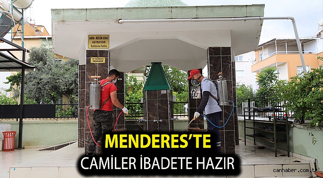 İlçede ibadete açılacak 46 camide ilaçlama ekibi dezenfeksiyon çalışmalarını gerçekleştirilirken, ibadethane temizlik ekibi de temizliklerini gerçekleştirdi. Vatandaşların camiye girerken kullanması için el dezenfektanı da Menderes Belediyesi tarafından tüm camilere verildi.