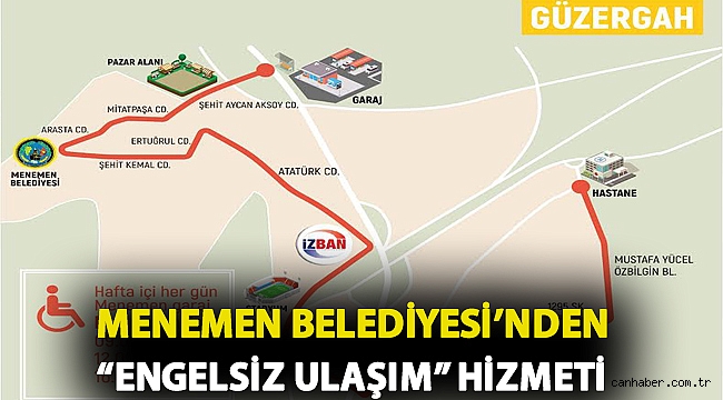 Menemen’de 16 Kasım Pazartesi’nden itibaren başlayacak “Engelsiz Ulaşım” hizmeti ile engelli vatandaşlar Menemen Garajı ile Menemen Devlet Hastanesi arasında seyahat edebilecekler. Hafta içi her gün Menemen Garajı’ndan 09.00, 12.00 ve 16.00 saatlerinde kalkacak olan özel olarak hazırlanmış servisin engellilerin şehir içi ulaşımlarında kolaylık sağlaması amaçlanıyor.