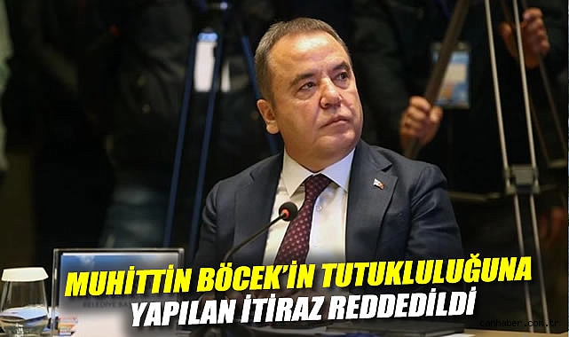 "Rüşvet" soruşturması kapsamında tutuklanan Antalya Büyükşehir Belediye Başkanı Muhittin Böcek'in tutukluluk kararına yapılan itiraz reddedildi.Antalya Cumhuriyet Başsavcılığınca yürütülen "rüşvet" soruşturması kapsamında tutuklanan Büyükşehir Belediye Başkanı Böcek'in avukatları, nöbetçi asliye ceza mahkemesine başvuru yapıldı.Mahkemeye sunulan dilekçe ile Böcek'in tahliyesi talep edildi.
