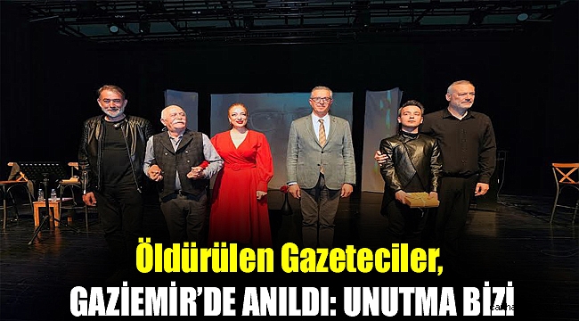 Gaziemir Belediyesi’nin Öldürülen Gazeteciler Günü kapsamında düzenlediği etkinlikte, Unutma Bizi oyunu sahnelendi. Cengiz Toraman’ın yazdığı ve yönettiği oyunu Levent Üzümcü Tiyatrosu oyuncuları Levent Üzümcü ile Orhan Aydın sahneledi. Solist Gülcan Altan ile Piyanist Dengin Ceyhan müzikleriyle oyuna renk kattı. Atatürk Kültür Merkezi’nde sahnelenen oyun, seyirciden tam not aldı. Oyuna yoğun ilgi gösteren Gaziemirliler, sanatçıları ayakta alkışladı.