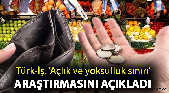 Türk-İş'in 'Açlık ve yoksulluk sınırı' araştırmasına göre, mayıs ayında 4 kişilik bir ailenin açlık sınırı 2 bin 374 liradan 2 bin 438 liraya, yoksulluk sınırı ise 7 bin 732 liradan 7 bin 942 liraya yükseldi. Yapılan açıklamada dört kişilik bir ailenin sadece gıda harcamasının net asgari üsret tutarının üzerinde olduğu belirtildi.Türk-İş, mayıs ayında 4 kişilik bir ailenin açlık sınırını 2 bin 438, yoksulluk sınırını ise 7 bin 942 lira olarak hesapladı.Konfederasyondan yapılan yazılı açıklamada, küresel salgın yeni tip koronavirüsün (Kovid-19), başta dar ve sabit gelirli kesimler olmak üzere tüm toplumu olumsuz etkilediği belirtildi.Alınan önlemlerle sağlık alanında koruyucu politikaların uygulandığı, ekonomik ve sosyal alanda özellikle işsizlik ve düşük gelir veya gelirsizliğin, en önemli sorun olduğu ifade edilen açıklamada, şu değerledirmelere yer verildi: