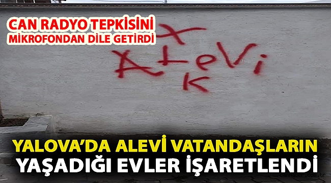 Yalova’da Bağlarbaşı Mahallesi’nde Alevi vatandaşların evlerine ait duvar ve kapılara sprey boya ile ‘Alevi’ diye yazıldı. Polis, Alevi vatandaşların evlerini boya ile işaretleyen faillerin peşine düştü.“İNSANLIK DIŞI HAREKETİ KINIYORUM”Konuyla ilgili açıklama yapan CHP Yalova İl Başkanı Mehmet Gürel, “Yalova gibi bir şehirde bazı Alevi yurttaşlarımızın evlerini işaretleyerek yapılan bu insanlık dışı, bu bağnaz hareketi esefle kınıyorum. Sorumluların hemen bulunması için emniyet yetkililerini acilen göreve çağırıyorum. Bu olayın muhakkak takipçisi olacağız. Bunu yapan yaratıkların Yalova'da yaşamasından dolayı da büyük utanç duyuyorum” ifadelerini kullandı.