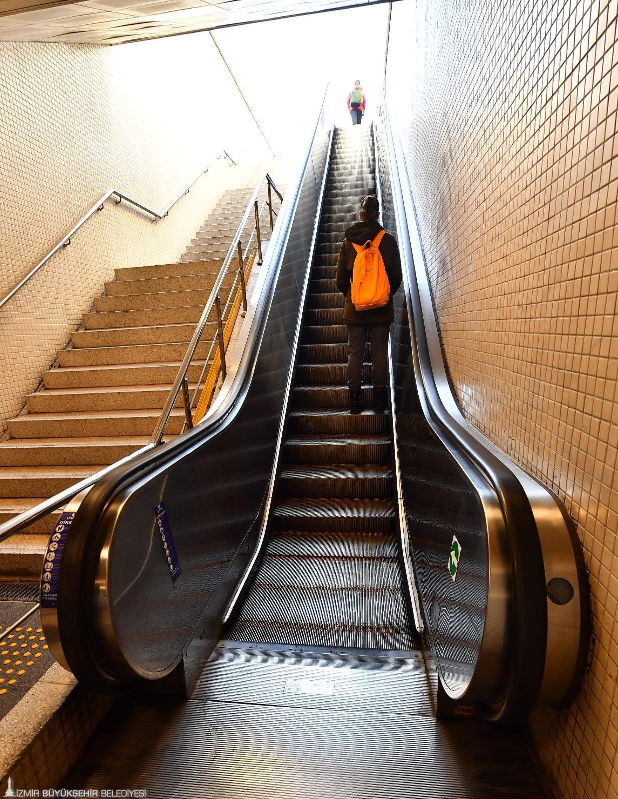 Evka 3-Narlıdere Kaymakamlık arasında hizmet veren 27 kilometrelik İzmir Metrosu’nun 24 istasyonundaki tüm yürüyen merdivenler bakım ve yenilemeye alınarak daha güvenli hale getirildi. Sistemdeki 194 yürüyen merdiven ve 84 asansör TMMOB Makine Mühendisleri Odası’nın denetimi altında tek tek elden geçirildi. İzmir Metrosu’nun hizmete girdiği 2000 yılından bu yana yürütülen en kapsamlı çalışmada sona gelindi.İzmir Büyükşehir Belediye Başkanı Dr. Cemil Tugay, “Merdivenlerin yüzde 95'inde çalışmalar tamamlandı. Bu süreç içerisinde yaptığımız diğer bütün işlerde olduğu gibi elimizden gelen azami hızı gösterdik” diye konuştu.İzmir Büyükşehir Belediyesi’ne bağlı İzmir Metro AŞ’nin, istasyonlardaki yürüyen merdiven ve asansörleri Temmuz ayında başlatılan ağır bakım ve tamir çalışmaları sayesinde tamamen güvenli hale getirildi. 194 yürüyen merdiven ve 84 asansörün tamamı daha önce yapılmamış ölçekte detaylı bakım ve onarım çalışmasına tabi tutuldu. Tespitlerin ardından yedek parça temin süreci başlatıldı. Parça montajları ve kontrolleri tamamlanan yürüyen merdivenler birer birer hizmete girmeye başladı. 45'i aşkın yürüyen merdiven kullanıma açıldı. Bakım ve onarım süreçleri, İzmir Metro AŞ atölyelerinde devam eden 8 yürüyen merdiven de etap etap devreye alınacak. Bir yürüyen merdiven ise beklenen parçalarının gelmesinin ardından hizmete girecek.